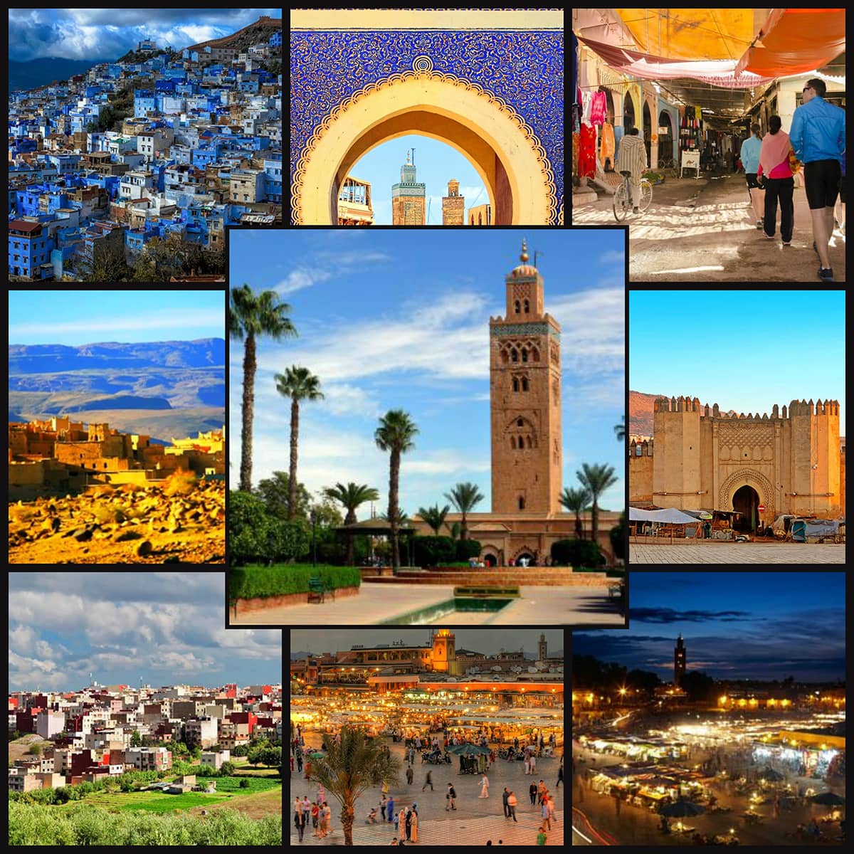 Le chauffeur viendra vous chercher dans votre lieu de résidence, puis il vous conduira vers le cœur vivant de Marrakech la Place Jamaa El Fna, reconnue pour son ambiance exceptionnelle qui débute dès les premières heures de la journée et qui ne trouve son comble que très tard le soir : des conteurs d’anecdotes, des musiciens, des danseurs, des charmeurs de serpents et des voyants de future… Une ambiance féérique et un voyage à travers le temps. Nous continuons notre visite dans quelques quartiers de l’ancienne ville de Marrakech, La Medina, cité médiévale et symbole principal de la ville impériale abritant tous les monuments et palais historiques de Marrakech, les souks et les principaux ateliers de l’artisanat marocaine ainsi qu’un nombre intéressant de Riads ou maisons d’hôtes qui constituent depuis quelques années un hébergement traditionnel privilégié par plusieurs touristes.